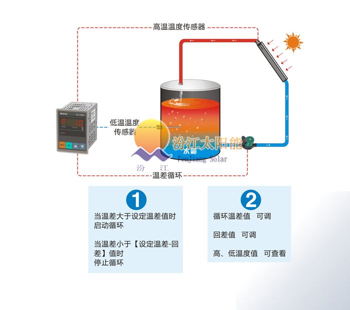 BF-215B+ 主要应用于热水循环、回水系统控制等场合。 可智能检测【高温点(例如集热器)】和【低温点(例如水箱)】之间的温度差值,当【温度差值】达到用户的预设值时,自动启动继电器输出控制【循环泵】等负载对高低温介质进行冷热循环,以达到缩小、降低高温、低温这两个温区间的温度差值(简称温差)。 BF-215B+ 设计为正温差启动有效,负温差不会启动输出。 宽场电源设计,能在AC80V~240V供电电源之间 自适应工作,稳定、可靠、持久。