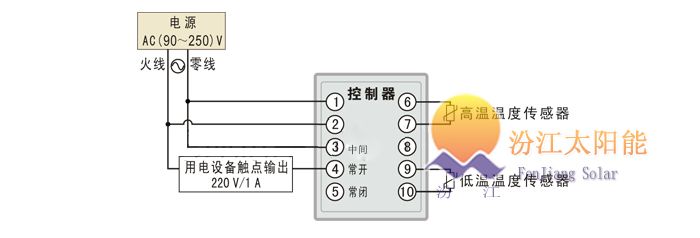 1. 一路继电器常开、常闭触点输出,控制温差循环 2.输出触点电流容量为阻性负载6安培,感性负载1安培。3.可控制1000W的电加热或者200W的电机或水泵,更大负载需用交流接触器扩容 |